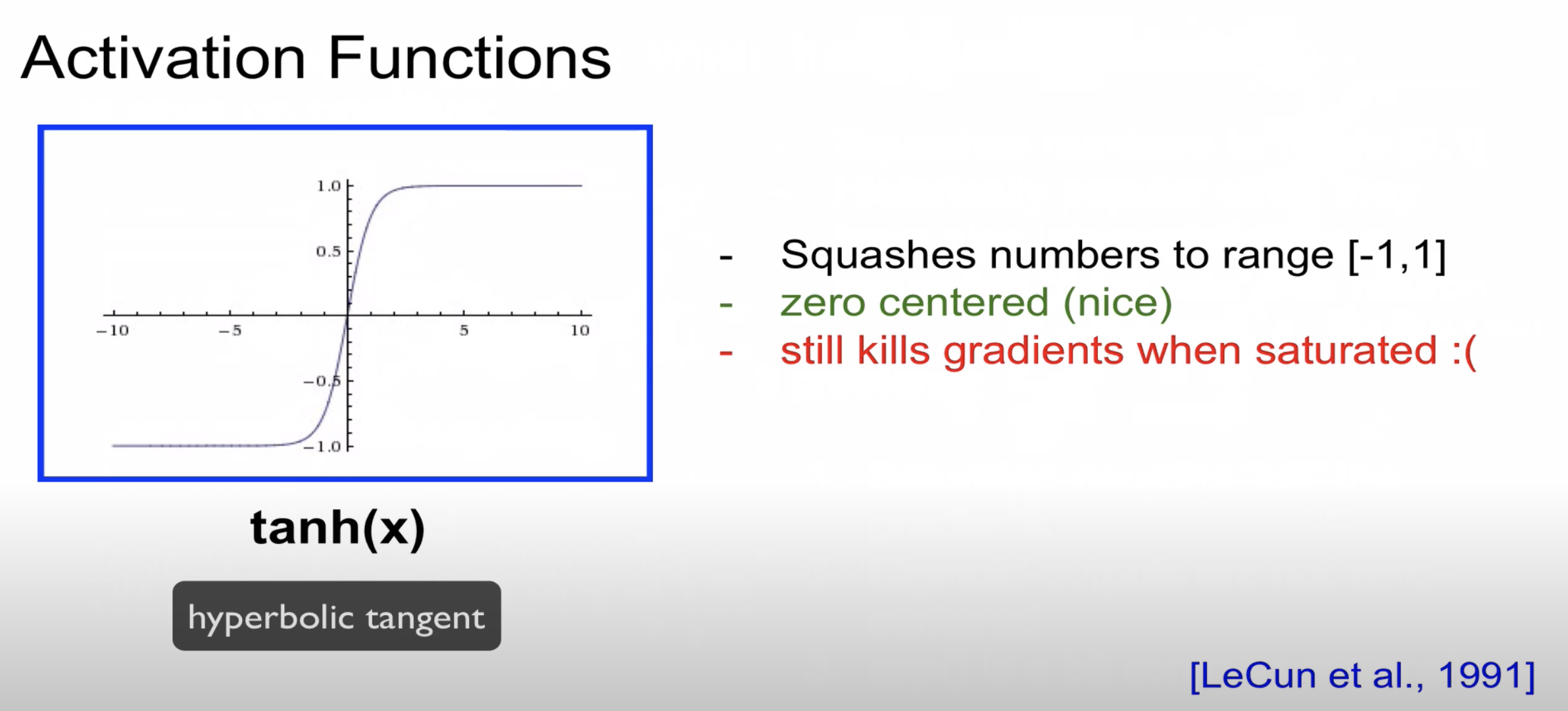 tanh의 경우 -1에서 1사이로 변환하며 함수의 중심값이 0입니다