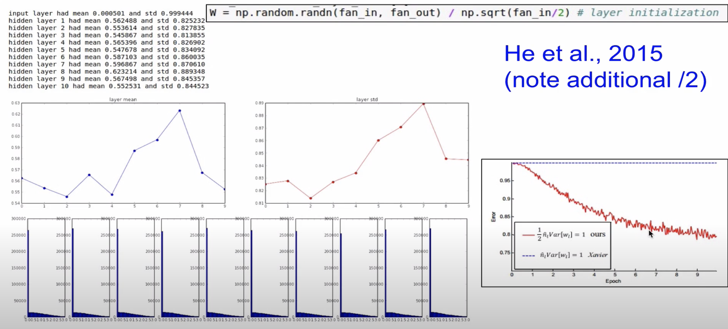 위의 문제를 해결하기 위해 카이밍 해가 발표한 초기화 방법으로 기존 방법에서 /2를 추가하여