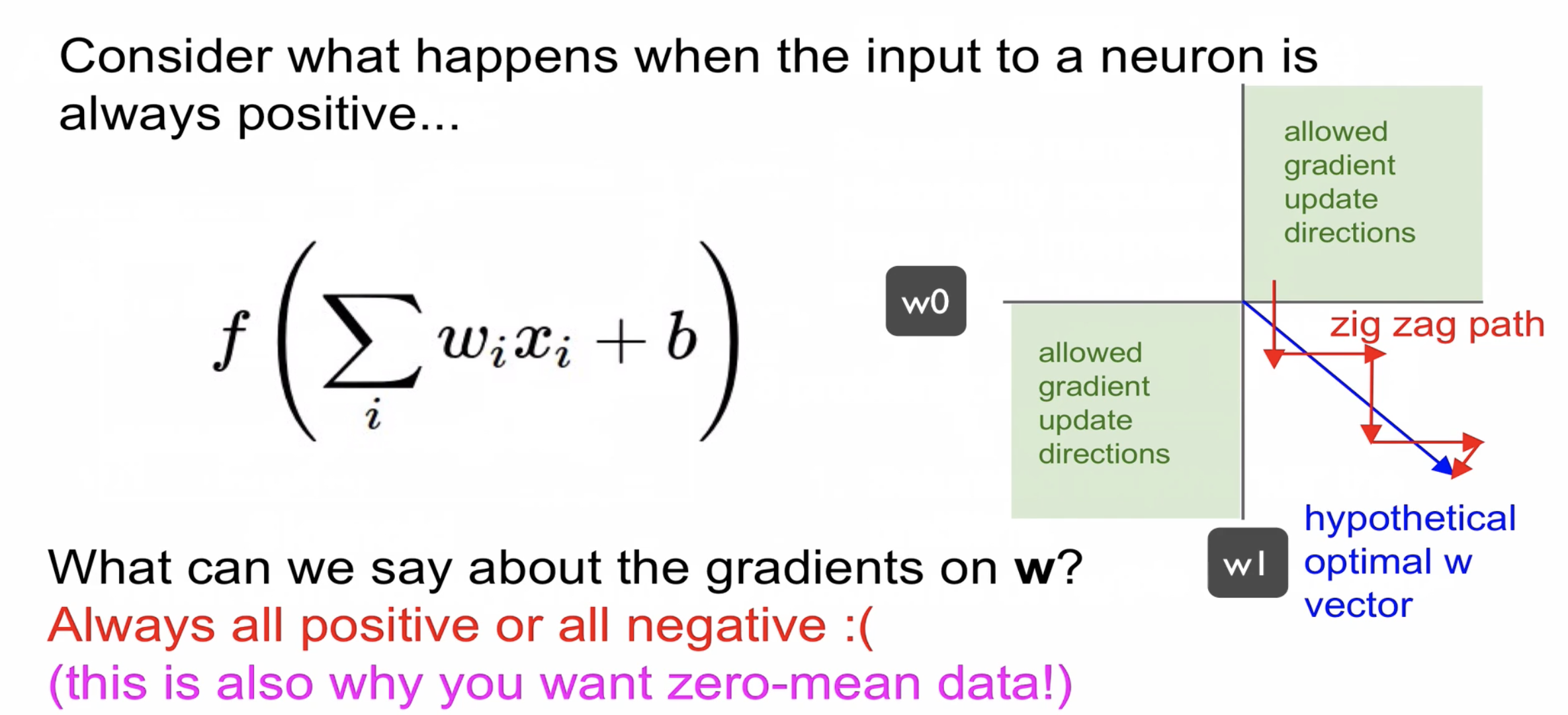 이상적인 경우 파랑색 화살표처럼 이동해야하는데 모두 양수 또는 음수일때만 역전파가 진행되어 지그재그 형태인 것을