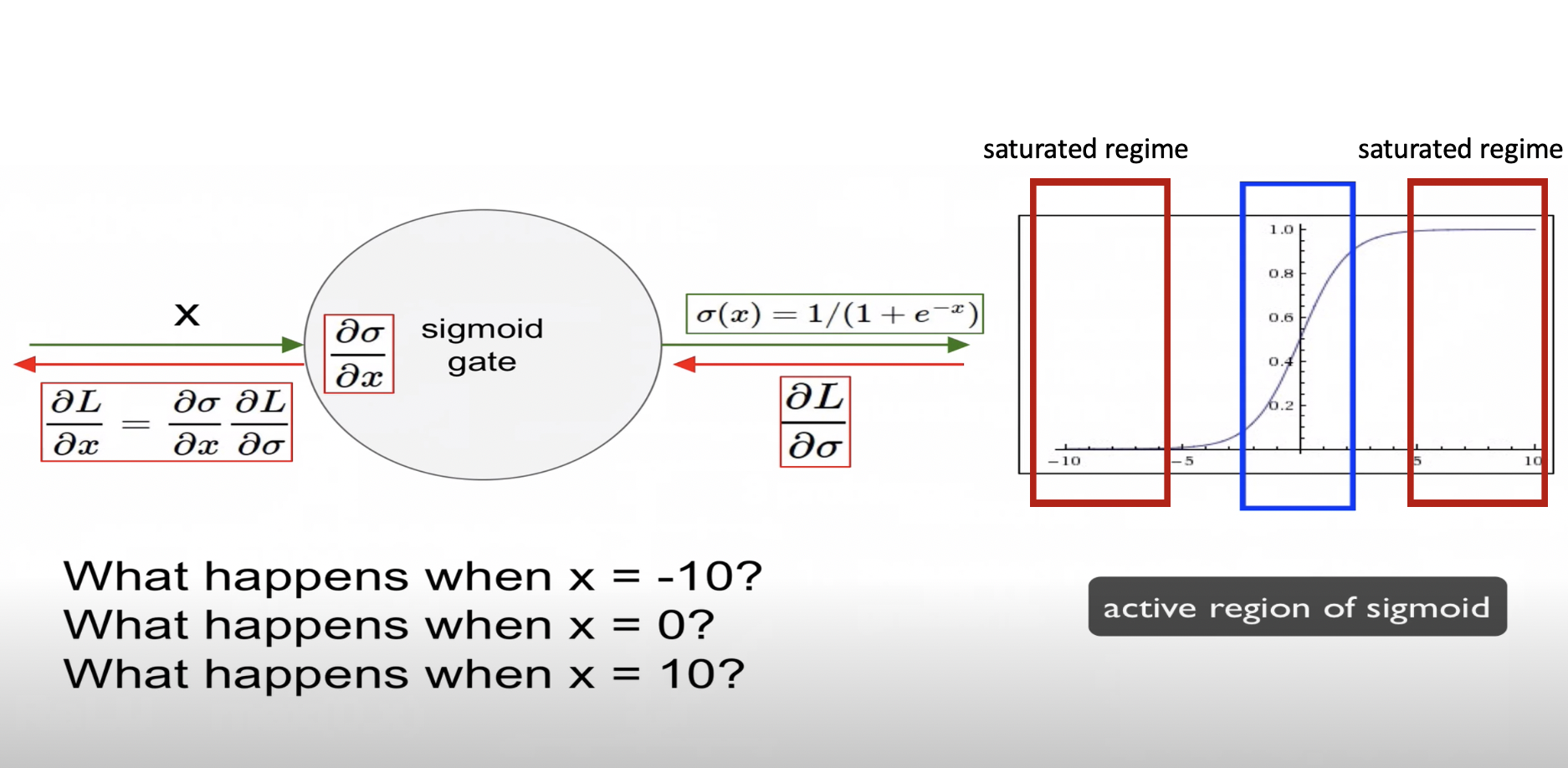 즉 파랑색 부분에 해당하는 경우에는 역전파가 제대로 전달되지만 빨강색 부분에 해당하는 경우에는