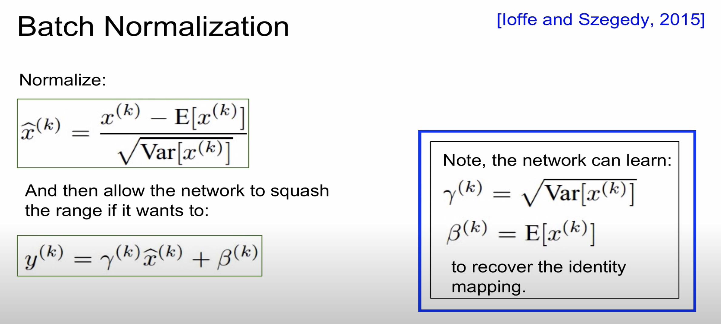 Batch Normalization의 경우 감마와 베타를 통해 정규화 값을 조정해줄 수 있다