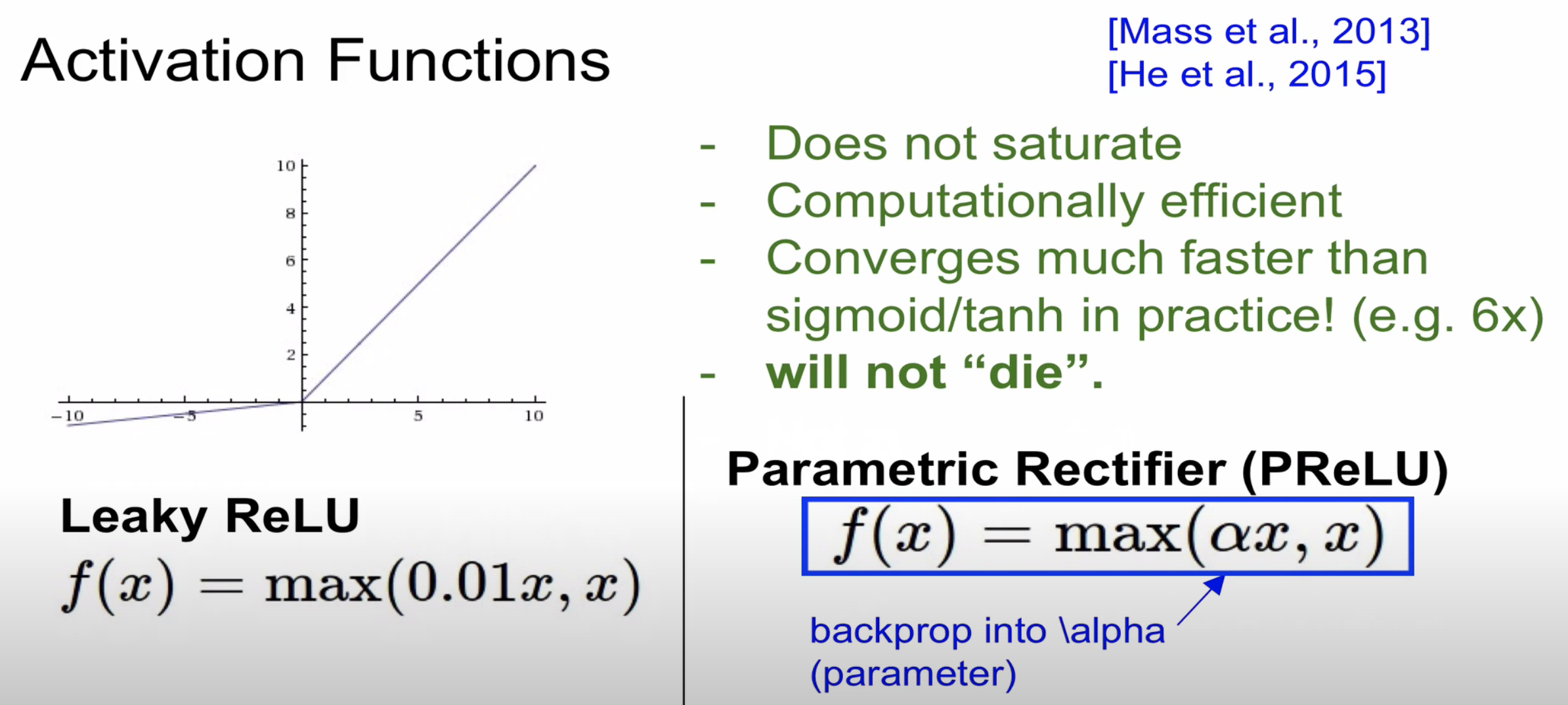 이 함수는 ReLU가 가지는 모든 장점을 가졌으며, dying ReLU문제 또한 해결합니다