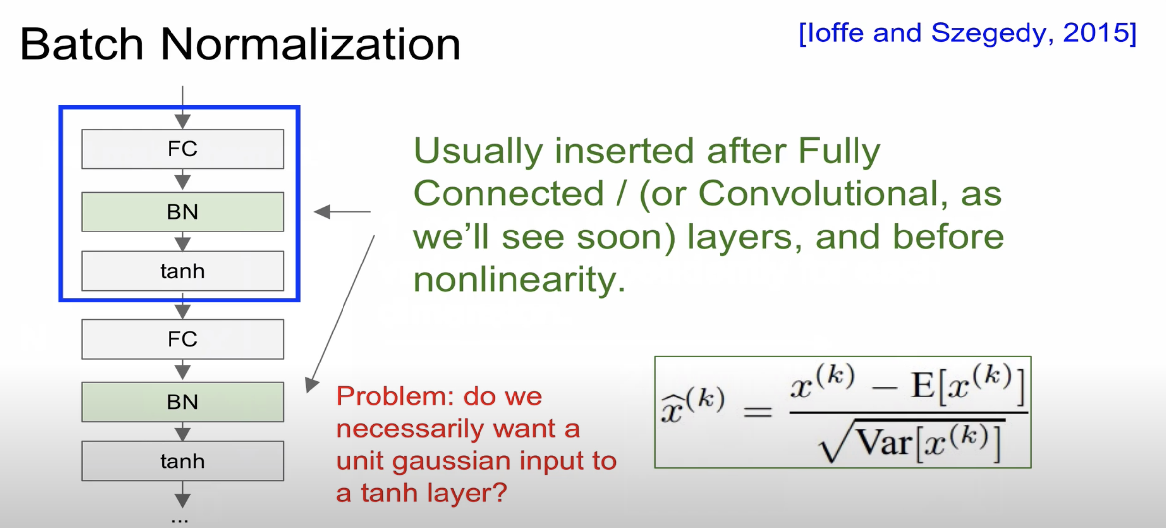Batch Normalization은 Fully connected와 활성화 함수 사이에 들어가는 것이 일반적이다