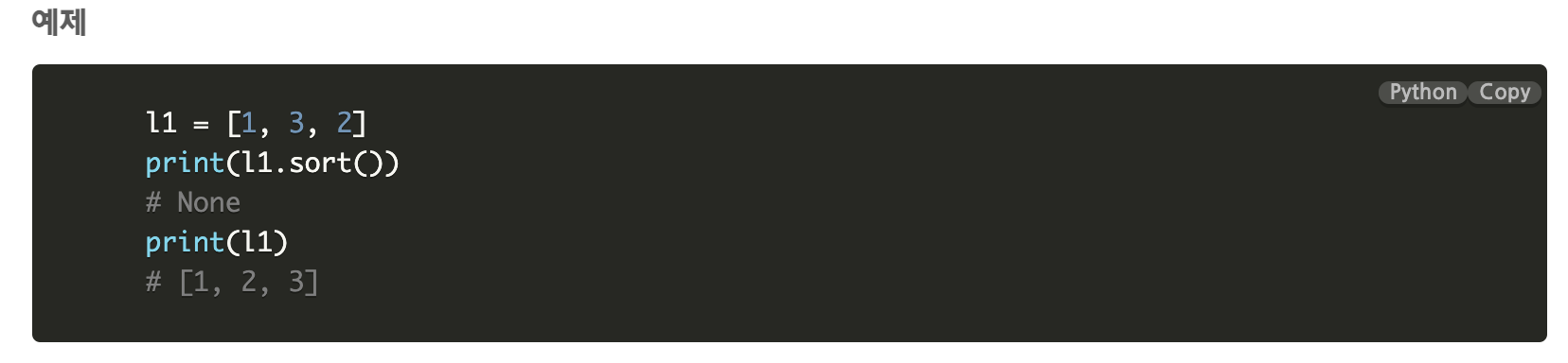 Sort의 경우 원본 리스트를 정렬하되 반환 값은 None이며 원본 리스트의 순서가 변경됩니다