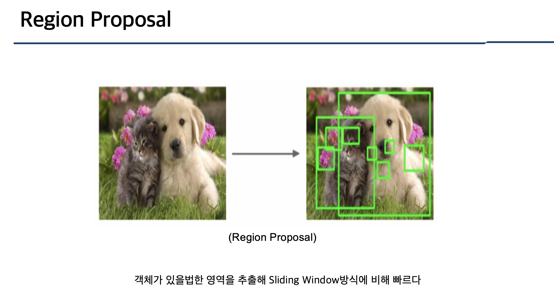 Region Proposal은 객체가 있을법한 영역을 추출하는 것을 말합니다