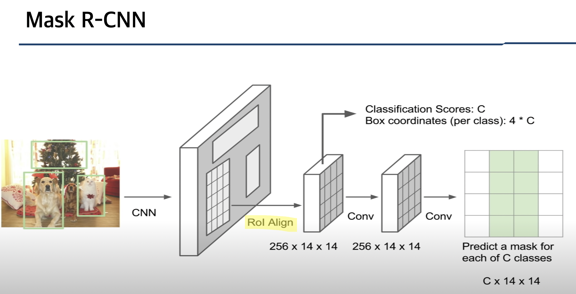 차이점은 ROI Align으로 객체 검출의 경우 ROI pooling 과정에서 소수점을 반올림하는데