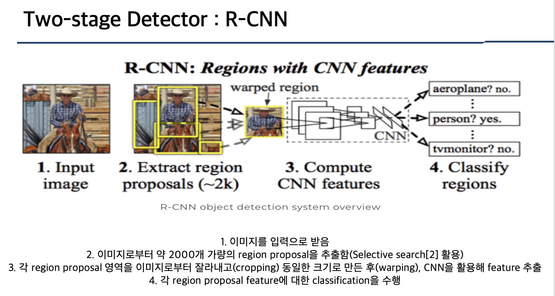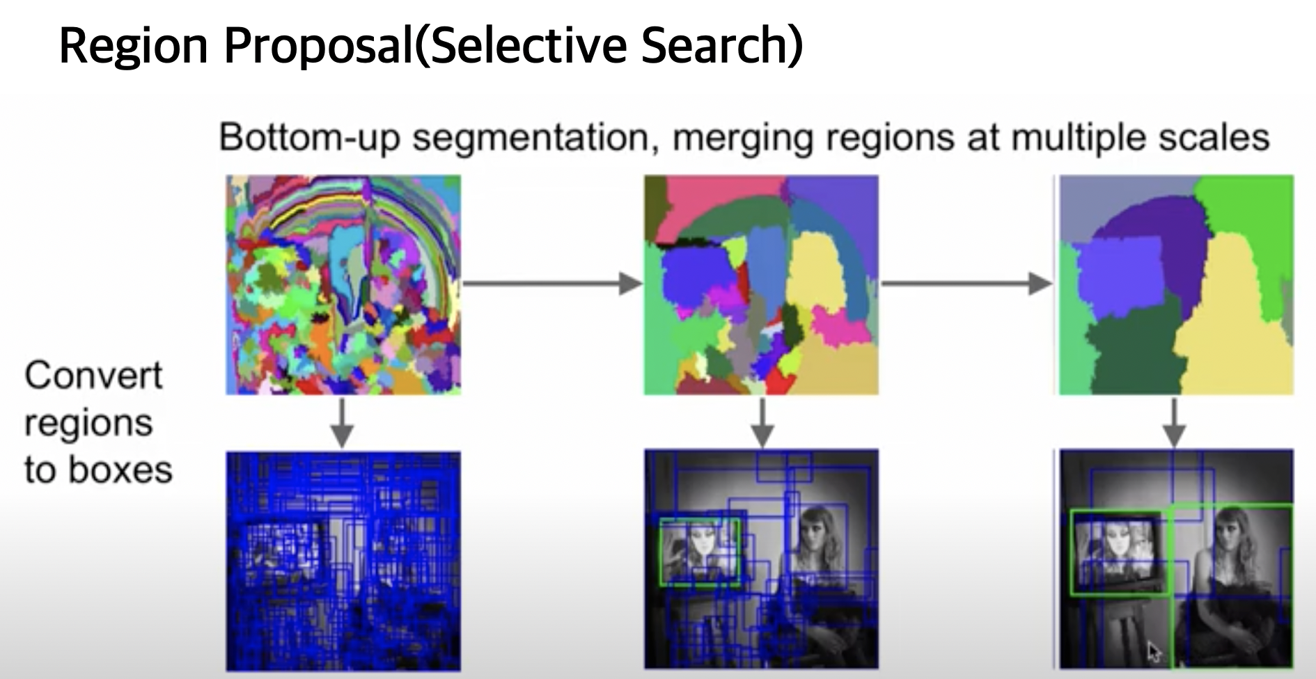 Region Proposal의 원리로 Selective Search 방법을 많이 활용하고 있습니다