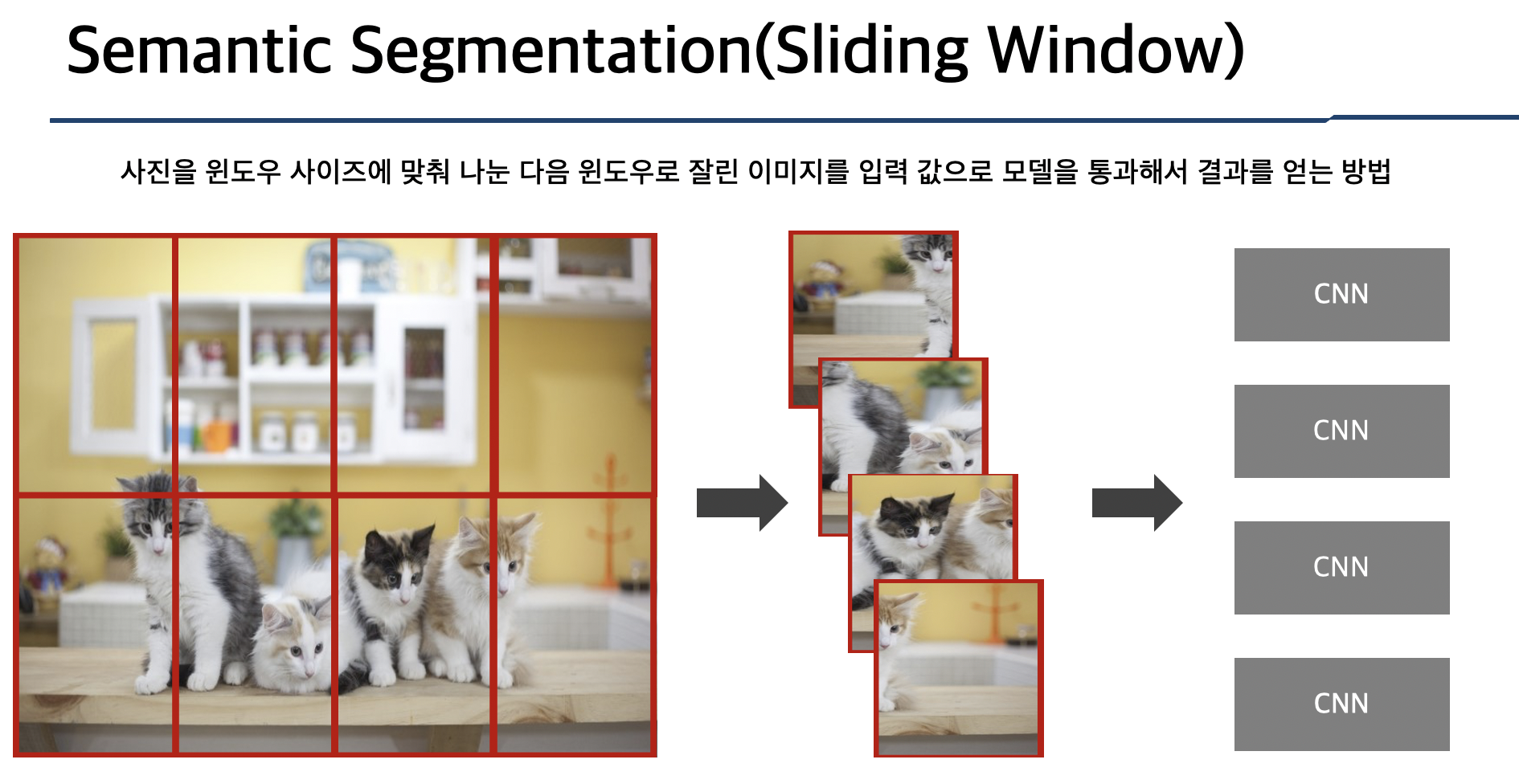 Semantic Segmentation은 Sliding Window 방식을 통해서 픽셀을 분류할 수 있다
