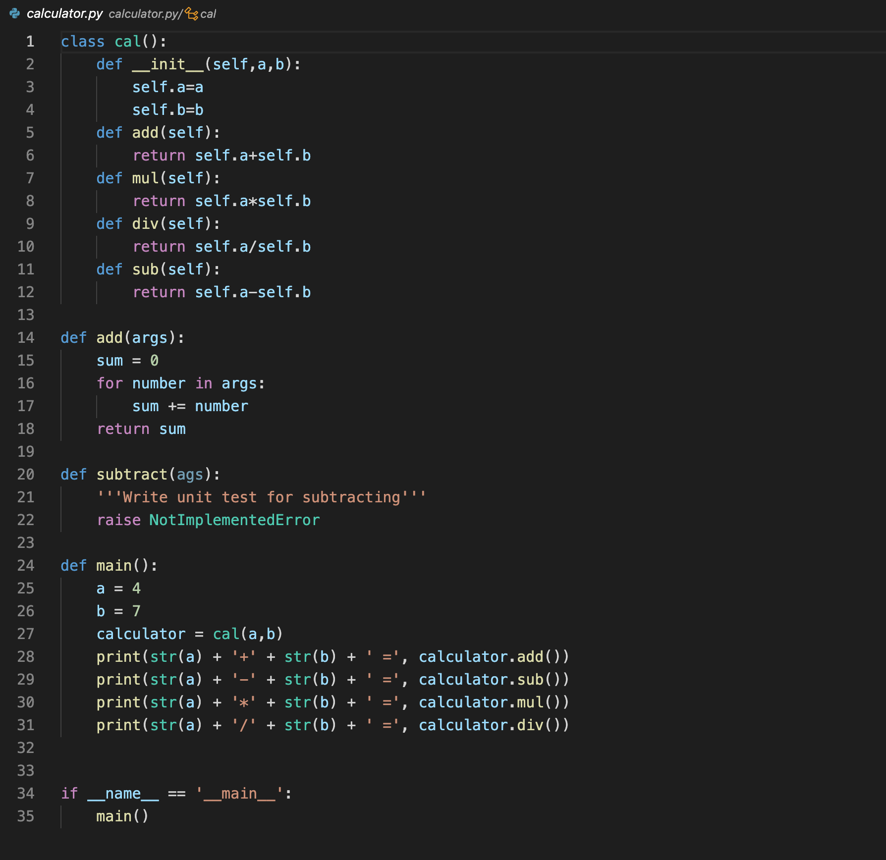 unit_test.py를 통해 앞서 작성한 calculator.py 함수 테스트